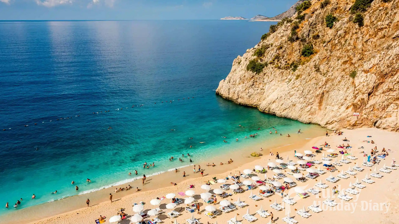 Located just 10 minutes from Kalkan, Kaputas is famous for its turquoise sea and dramatic cliffs. This small cove beach sits at the mouth of a canyon, accessible via stairs descending from the coastal road. The setting is spectacular, with steep cliffs framing a crescent of sand meeting water so blue it seems artificial. Arrive early in summer to secure a spot, as this photogenic beach attracts crowds by midday.